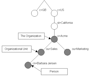 Così ad esempio,, l’entrata per Barbara Jensen(nella figura 1.1) ha come DN partendo dal suo RDN: uid=babs, ou=People,